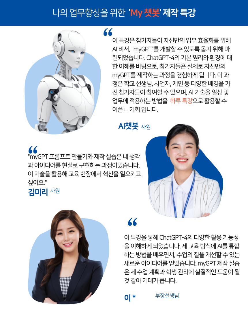 ChatGPT로 나의 업무향상을 위한 My챗봇 제작 특강 안내